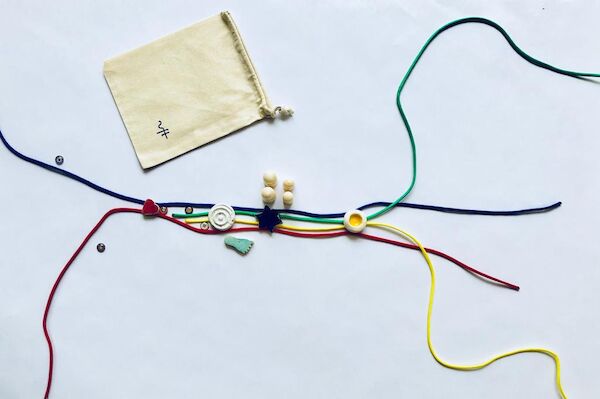 Die liebevoll zusammengestellten Leinensäckchen beinhalten verschiedenfarbige Seile, Holzfiguren, resssourcenorientierte Symbole und bunte Steine.